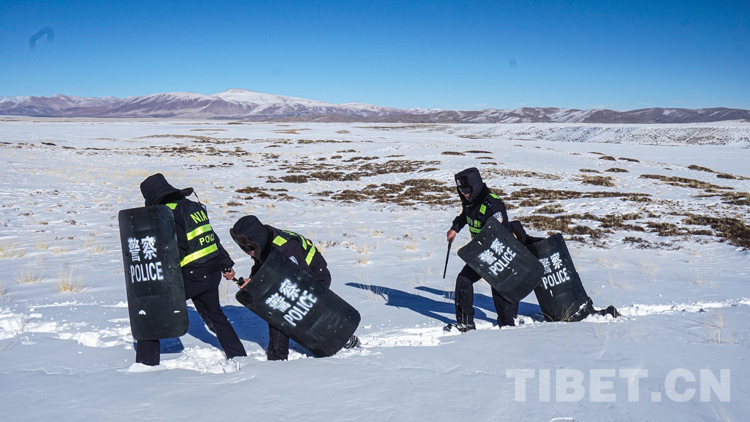 界碑就在前方10公里的那座山頭上,那里就是民警們此行的最終目標(biāo)。民警們?cè)邶R腰深的雪地里,向著界碑方向,巡邏隊(duì)員們“殺出一條雪路”!