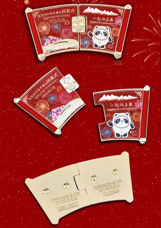 “來日方長” 北京2022年冬奧會閉幕式紀(jì)念徽章一套兩枚,拼合在一起就形成了一個漂亮的卷軸,寓意雖然北京冬奧會圓滿閉幕,但奧運(yùn)精神薪火相傳,來日方長?;照虏馁|(zhì)為鋅合金,采用釉面彩繪、立體浮雕、立體分層等工藝,每個產(chǎn)品均雕刻獨(dú)立序列號,高5cm、寬9.3cm、厚3mm,紙盒包裝,限量2022套。