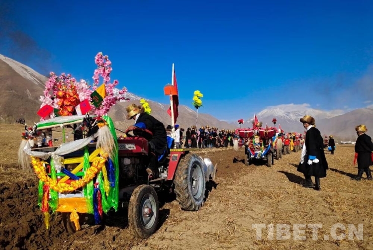 據(jù)悉,儀式當(dāng)日上午,村民們會(huì)身著節(jié)日盛裝,歡聚在田間地頭、載歌載舞隆重舉行春耕春播儀式。活動(dòng)現(xiàn)場(chǎng),姑娘們舉起手中的切瑪、青稞酒、人參果為犁手們唱歌敬酒,在祝福的歌聲中,開啟春耕“第一犁”。在西藏,過去是牦牛耕地,如今,隨著農(nóng)業(yè)科學(xué)化發(fā)展,現(xiàn)在農(nóng)耕都用現(xiàn)代化的拖拉機(jī)“鐵?!备亍R话慵獣r(shí)一到,一個(gè)個(gè)犁手頭頂金黃圓筒帽,身穿氆氌藏裝駕著一輛輛插著五星紅旗,系著潔白哈達(dá)的“鐵?!本従忨傔M(jìn)田間,一片片沃土隨著鐵犁慢慢翻開,婦女們?cè)诤竺娌ト銮囡挤N……在田埂上形成一道最靚麗的風(fēng)景線,好不壯觀!