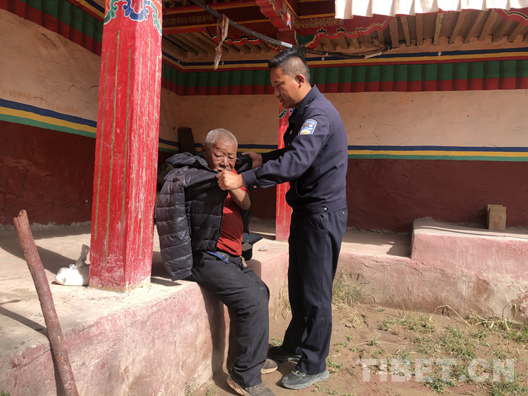 旦增桑布在參加“百萬警進(jìn)千萬家”的活動時,看到南木加爺爺、卓瑪奶奶等三位孤寡老人的生活困境,主動承擔(dān)起照看老人的責(zé)任,并經(jīng)常抽出時間來噓寒問暖、打掃衛(wèi)生、送醫(yī)救治,并結(jié)成了幫扶對子。