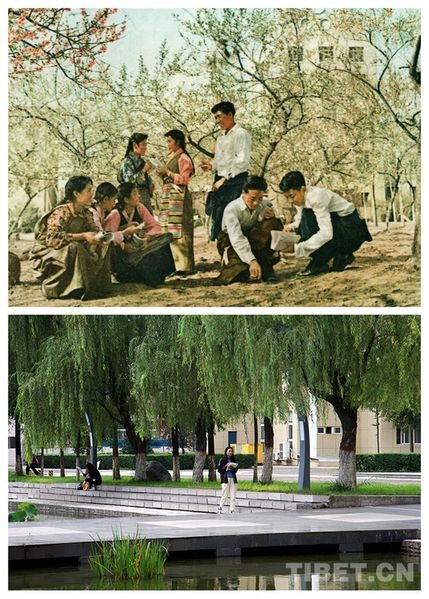 上圖為西藏民族大學(xué)建校初期(時(shí)稱西藏公學(xué)),學(xué)生在校園里學(xué)習(xí),圖片由西藏民族大學(xué)提供;下圖為2019年10月,學(xué)生在校園里學(xué)習(xí) 攝影:王媛媛
