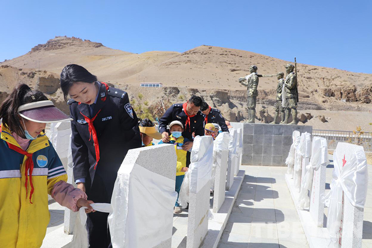 中國西藏網(wǎng)訊 青松翠柏守英烈,春風(fēng)百花寄哀思。在清明節(jié)來臨之際,為傳承英烈遺志,弘揚(yáng)英烈精神,4月2日,西藏普蘭出入境邊防檢查站民警與普蘭縣九年一貫制學(xué)校少先隊(duì)員們一起來到普蘭縣烈士陵園開展“清明祭英烈”活動(dòng)。
