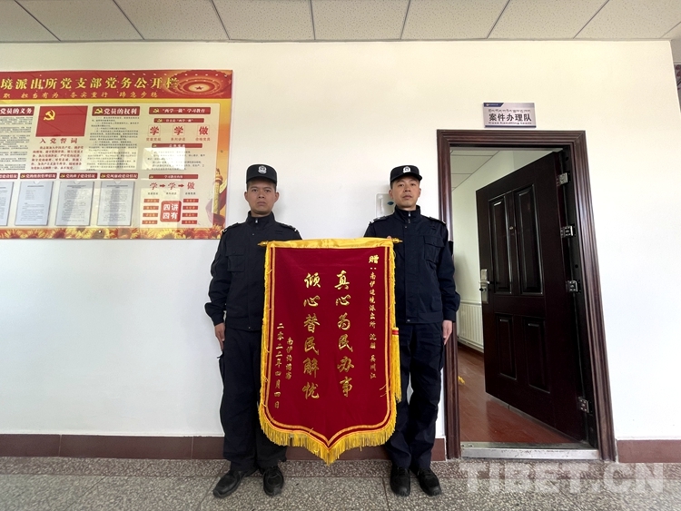 中國西藏網(wǎng)訊 “真心為民辦事,傾心替民解憂!”近日,西藏自治區(qū)林芝邊境管理支隊南伊邊境派出所收到一面來自廣東的錦旗,向派出所移民管理警察沈朋、吳川江的幫助表示感謝。