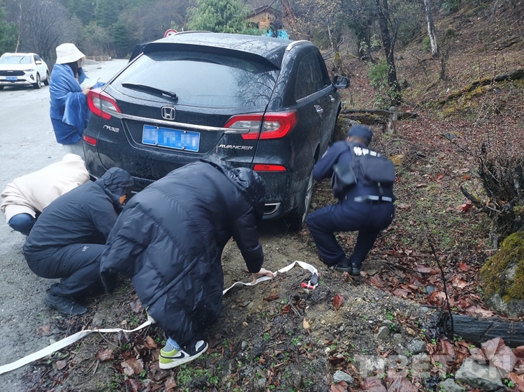 “我們是第一次遇到這種情況,不知道怎么辦,只有請求你們幫助!”當?shù)亟诮涤贻^多、道路濕滑,兩名廣東籍女游客在南伊風景區(qū)內(nèi)游玩返回途中操作不慎,導致車輛發(fā)生側(cè)滑,撞在路邊石頭上,無法自行脫困。不熟悉當?shù)厍闆r的游客,在雨中焦急無助,撥打報警求助。
