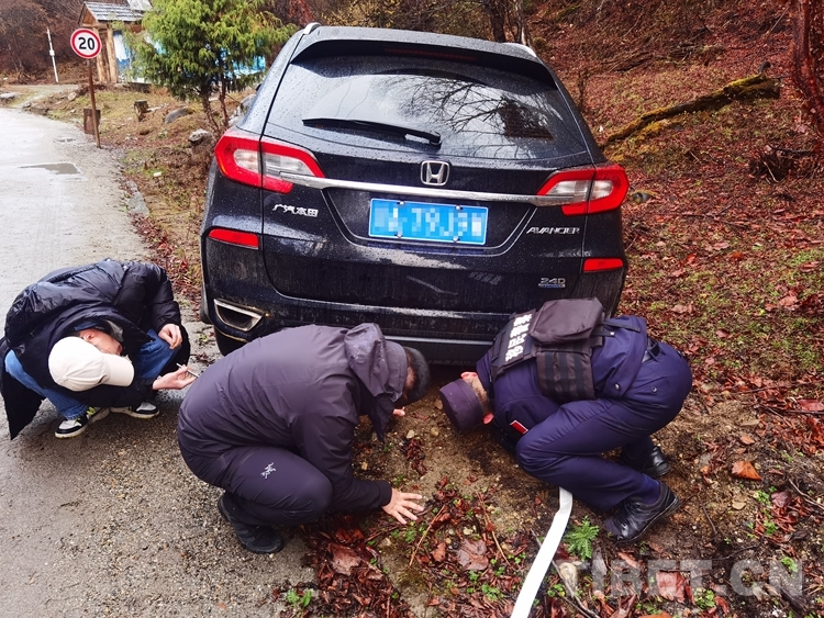 “我們來了,不用慌!”抵達現(xiàn)場后,移民管理警察向游客送上礦泉水,安撫游客情緒,隨后對現(xiàn)場進行拍照取證,并使用警車幫助車輛脫困。經(jīng)過半個多小時的救援,車輛成功脫困,但由于受損嚴重,在警車護送下行駛2公里后無法繼續(xù)返回縣城。