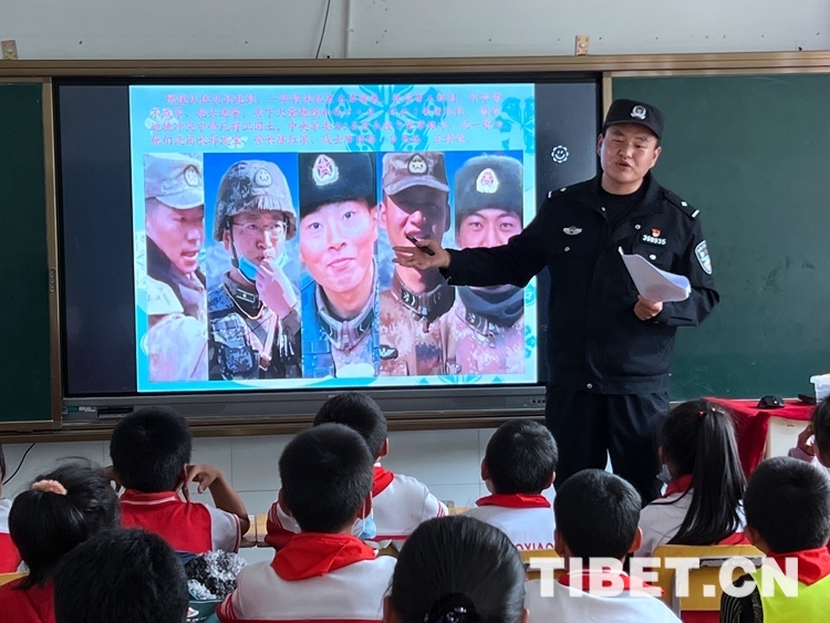 中國西藏網(wǎng)訊 “同學們,大家知道照片上這位英雄是誰嗎?”伴隨著民警周升展的提問聲,孩子們紛紛舉起手回答出了這位英雄——祁團長。“你們真聰明,今天叔叔給大家講一講新時代衛(wèi)國戍邊英雄祁發(fā)寶團長的故事……”