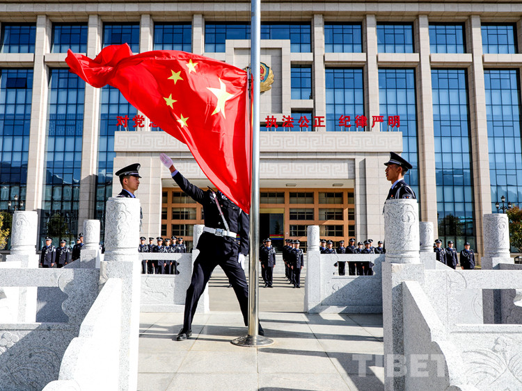 在林芝支隊機關(guān)大樓前,鮮艷的五星紅旗在雄壯的國歌聲中冉冉升起,機關(guān)全體民警警容嚴整、精神飽滿,用標準的敬禮向國旗致敬,向偉大的祖國和勞動人民致敬。