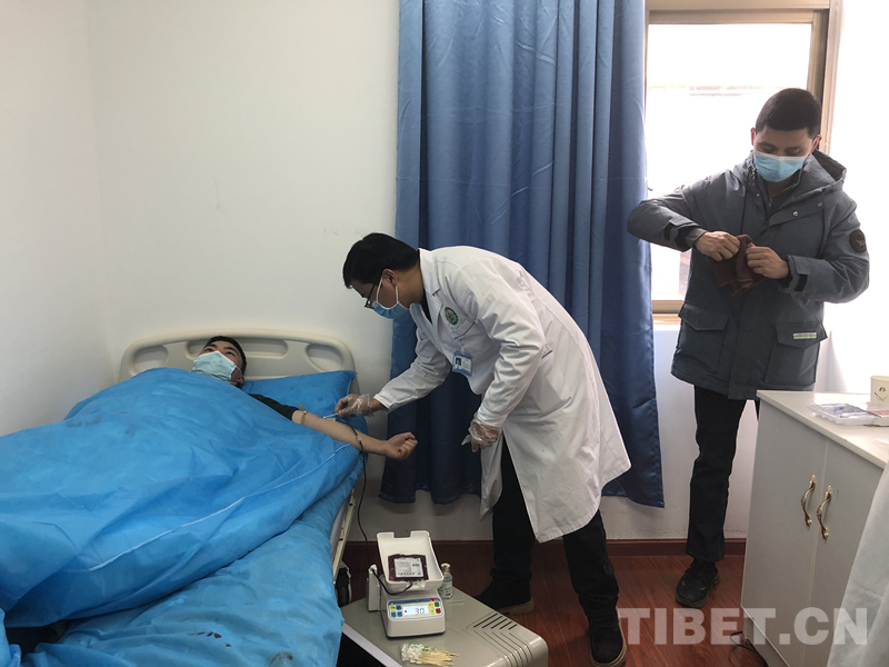 圖為洛隆縣武警支隊官兵為患者緊急獻血