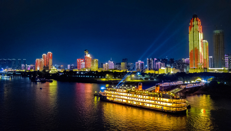圖為知音號游船在武漢長江段瑰麗的夜景中暢行 圖片來源:知音號網站