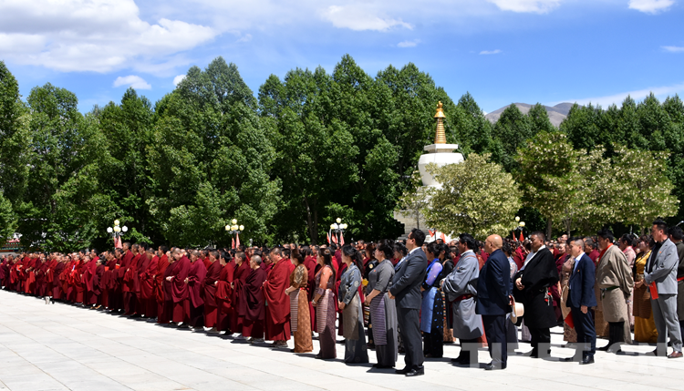 西藏自治區(qū)黨委常委、統(tǒng)戰(zhàn)部部長,區(qū)政協(xié)黨組副書記、副主席嘎瑪澤登出席儀式并勉勵經(jīng)師和學(xué)員們弘揚愛國愛教、護國利民的優(yōu)良傳統(tǒng),切實增強參加“三個意識”教育的責(zé)任感、使命感,爭當(dāng)“學(xué)”的典型和“做”的楷模。