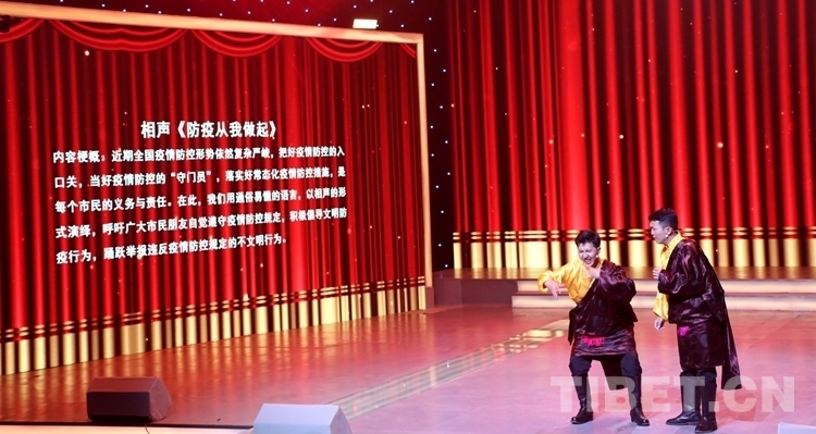 拉薩市全國文明城市創(chuàng)建主題作品頒獎晚會也同步舉行。在頒獎晚會上,由拉薩市委宣傳部、市文明辦、市商務(wù)局等單位創(chuàng)作的《文明拉薩》《全民行動》《網(wǎng)絡(luò)文明之歌》《如果我在拉薩遇見你》《防疫從我做起》《一年更比一年好》等節(jié)目悉數(shù)登場。其中還穿插了“第四屆全國孝老愛親道德模范”得主尼瑪潘多、“第八屆全國公安機關(guān)愛民模范獎”得主冷小東現(xiàn)身說法,講述自身感人故事。一個個身邊人、身邊事讓現(xiàn)場觀眾感同身受。