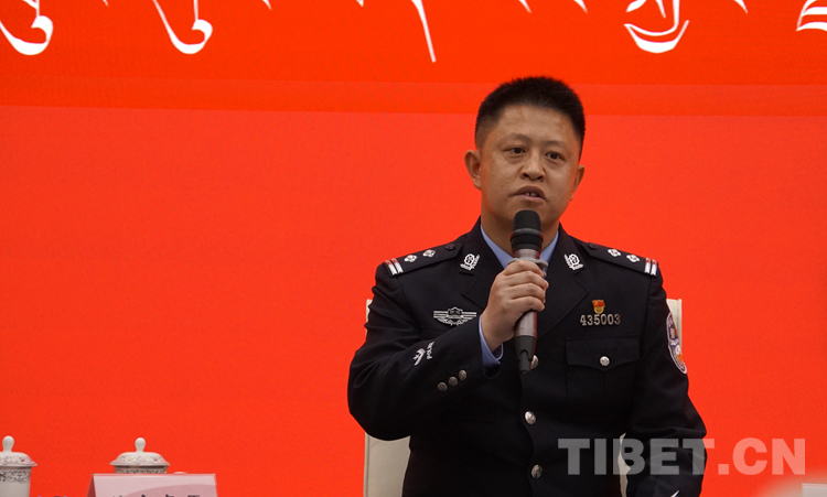 圖為林芝市波密縣公安局黨委副書(shū)記、政委、四級(jí)高級(jí)警長(zhǎng)黃炳勇分享青春擔(dān)當(dāng)故事 攝影:王媛媛