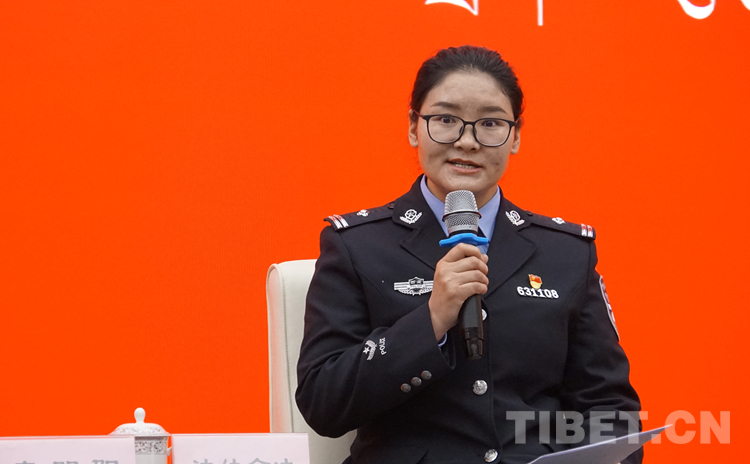 圖為那曲市色尼區(qū)公安局紀(jì)檢監(jiān)察室主任達(dá)娃倉(cāng)決分享青春擔(dān)當(dāng)故事 攝影:王媛媛