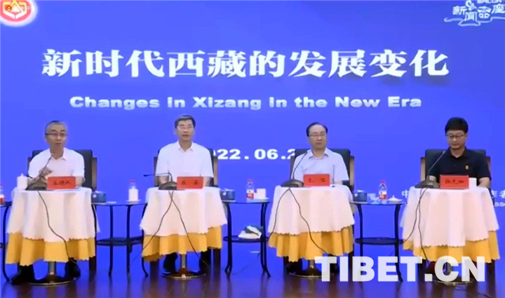 圖為6月22日,中國藏學研究中心二級研究員、學術委員會委員張云(左二),社會經(jīng)濟研究所所長、研究員扎洛(左三),宗教研究所副所長、副研究員拉先加(右一)參加中國記協(xié)舉辦的“新時代西藏的發(fā)展變化”新聞茶座 截圖:劉莉
