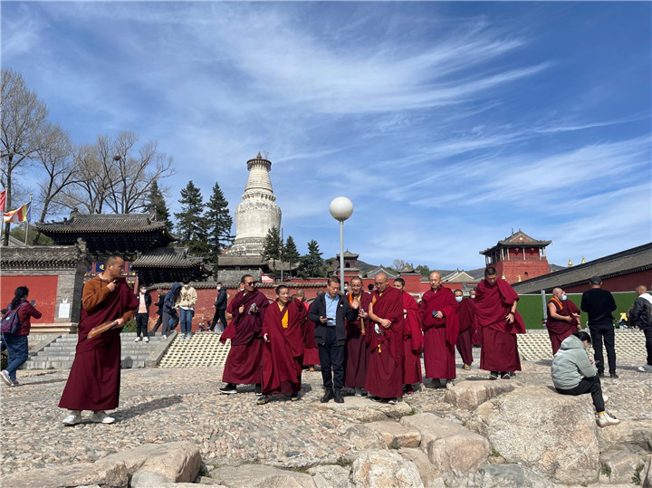 圖為中國藏語系高級佛學院2021級高級學銜班師生赴五臺山開展現(xiàn)場教學 來源:中國藏語系高級佛學院