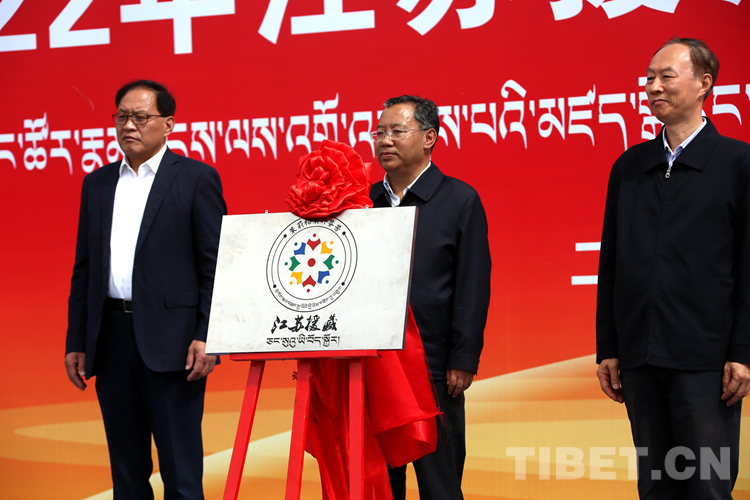 圖為現場發(fā)布江蘇援藏項目標識 攝影:王佳豪