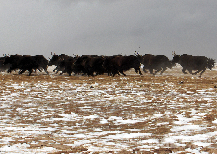 這是奔跑在羌塘國家級自然保護(hù)區(qū)的國家一級保護(hù)動物野牦牛(唐召明2009年攝)