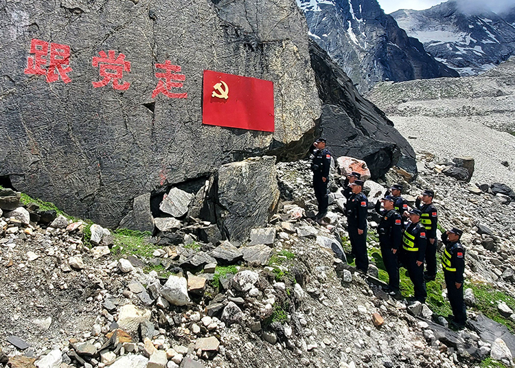 “我志愿加入中國共產(chǎn)黨,擁護黨的綱領,遵守黨的章程......”。邊巴邊境派出所民警在深入一線巡邏踏查間隙,面向黨旗肅然站立,高舉右拳莊嚴宣誓,表達為黨的事業(yè)奮斗終身的初心,更加堅定聽黨話、跟黨走的理想信念。