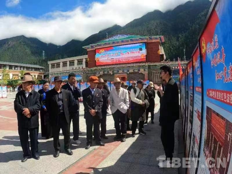 7月1日,“流動(dòng)的紅色博物館”流動(dòng)到了波茂廣場。該展覽展示了400余張歷史照片,包含了32個(gè)紅樓故事,200多位“老西藏”口述故事,30個(gè)“紀(jì)念章里的紅色故事”,25個(gè)波密紅色遺址介紹。