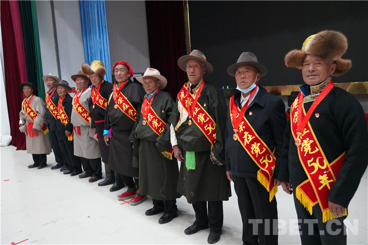 活動(dòng)現(xiàn)場(chǎng),為10名老黨員代表頒發(fā)了“光榮在黨50年”紀(jì)念章,敬獻(xiàn)了潔白的哈達(dá)。