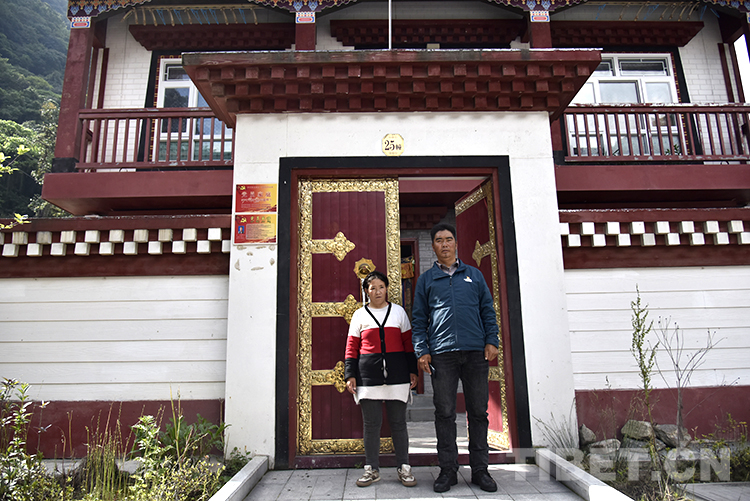 圖為西藏自治區(qū)日喀則市亞東縣龐達村村民普布扎西(右)和妻子在自家門口 攝影:王媛媛
