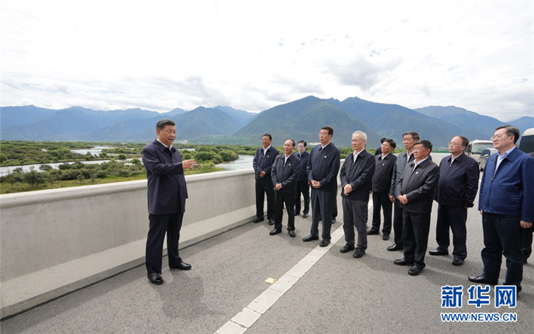 2021年7月21日上午,習(xí)近平總書記乘車來到林芝尼洋河大橋,考察雅尼濕地。遠眺水波蕩漾、草木蔥蘢的雅尼濕地,聽取雅魯藏布江及尼洋河流域生態(tài)環(huán)境保護和自然保護區(qū)建設(shè)等情況。習(xí)近平強調(diào),要堅持保護優(yōu)先,堅持山水林田湖草沙冰一體化保護和系統(tǒng)治理,加強重要江河流域生態(tài)環(huán)境保護和修復(fù),統(tǒng)籌水資源合理開發(fā)利用和保護,守護好這里的生靈草木、萬水千山。(圖片來源:新華網(wǎng) 攝影:新華社記者 李學(xué)仁)