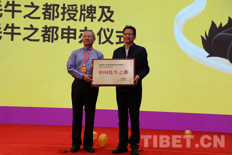 圖為7月20日在青海省玉樹藏族自治州開幕的首屆中國(玉樹)牦牛產(chǎn)業(yè)大會(huì)上,玉樹州獲得“中國牦牛之都”授牌 攝影:包利英