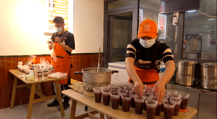 8月12日凌晨5時許,天還沒亮,“五餡包”老板帶領餐廳工作人員來到了店里,開始準備當天的早餐。九點鐘,記者在后廚看到一份份熱乎乎的包子、豆?jié){、稀飯陸續(xù)出鍋,餐飲工作人員將所有餐品細心打包好,便和同事一起出發(fā),將愛心早餐送到核酸檢測點。