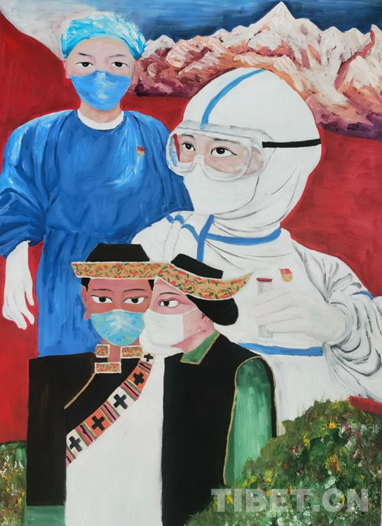 圖為作品《抗擊疫情人人有責(zé)》 作者:索朗才旺