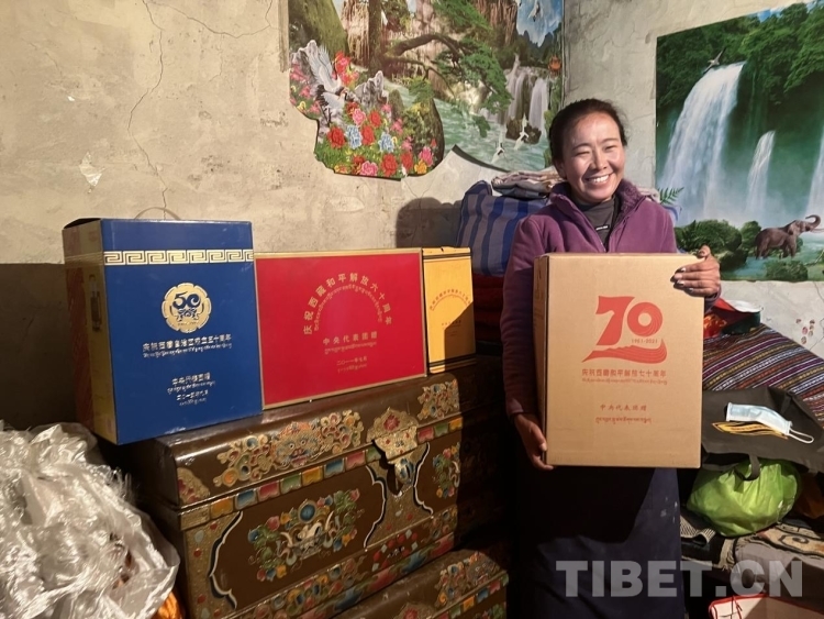 查斯小心翼翼地從屋里拿出一個盒子,從中一一取出幾只精致的酥油茶碗,盛滿干果,與切瑪盒一起擺在屋里的醒目位置。這幾只茶碗正是7年前中央代表團在西藏自治區(qū)成立50周年時向西藏各族群眾贈送的禮物之一。