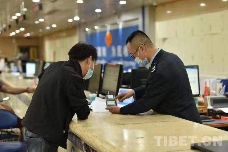 圖為西藏自治區(qū)稅務(wù)系統(tǒng)工作人員幫助納稅人辦理業(yè)務(wù)。