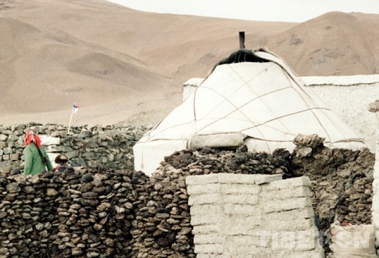 這是從新疆回遷到雙湖辦事處榮瑪鄉(xiāng)(現(xiàn)尼瑪縣榮瑪鄉(xiāng))的一戶居住在蒙古包的牧民人家(唐召明1990年1月攝)