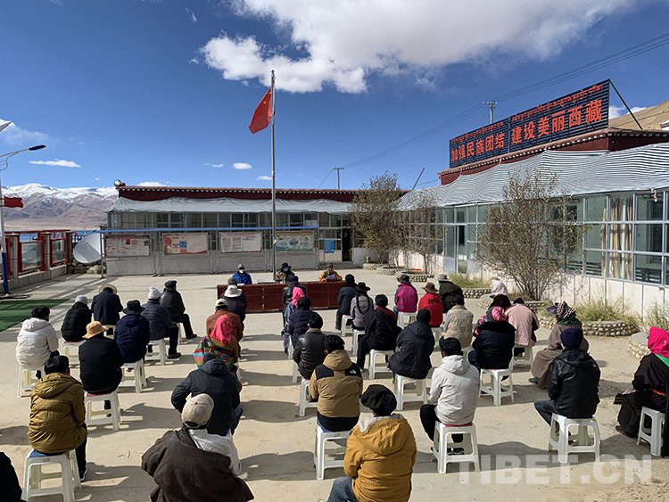 圖為西藏自治區(qū)總工會駐那曲市尼瑪縣文布鄉(xiāng)南居委會第十一批工作隊組織宣講黨的二十大精神攝影:次仁央宗