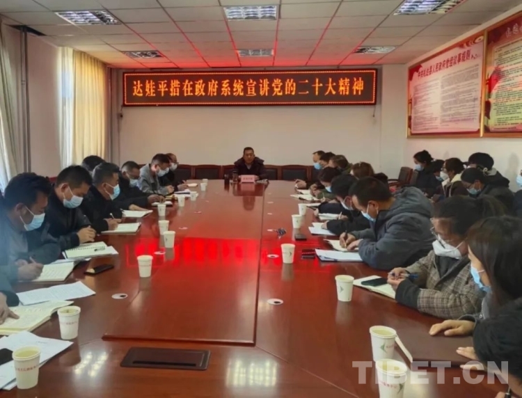 圖為達(dá)娃平措為札達(dá)縣政府系統(tǒng)干部宣講黨的二十大精神