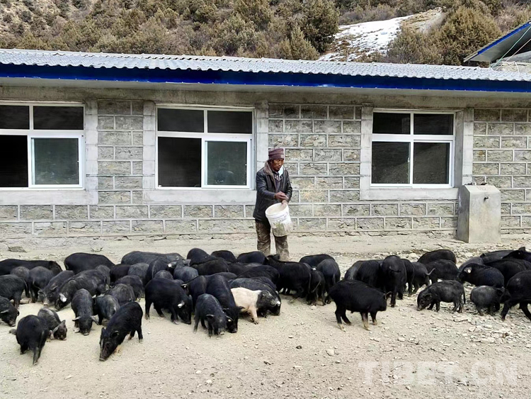 圖為朗縣登木鄉(xiāng)崩達(dá)村藏豬養(yǎng)殖場(chǎng)
