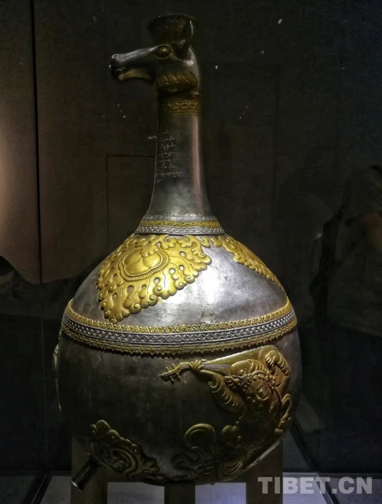 圖為唐代(吐蕃時(shí)期)獸首胡人紋鎏金銀瓶 攝影:李元梅