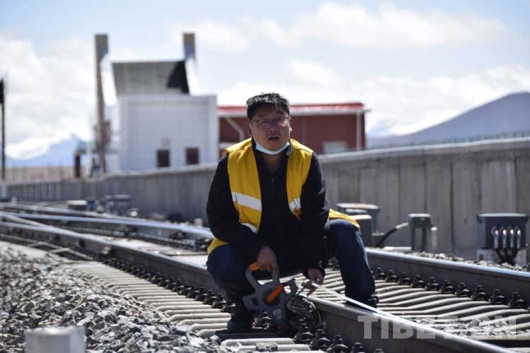 圖為王楨睿在工作中。供圖:青藏鐵路集團(tuán)有限公司格爾木工務(wù)段,攝影:東科力加