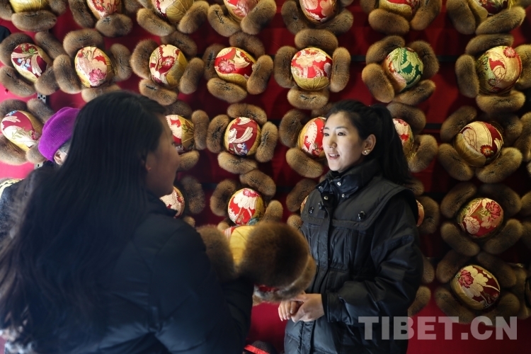 五顏六色的邦典讓人目不暇接,阿媽倉(cāng)決連著試了好多個(gè)樣式,最終選中了繡著康布梅朵(桃花)樣式的新款,對(duì)著鏡子反復(fù)試穿,臉上笑意盈盈?!暗昀锏陌畹錁邮秸娴煤芏?,我也給老婆挑選了一款。”來(lái)自那曲的桑珠高興地說(shuō)。店主嘎珍來(lái)自山南扎囊縣,她告訴記者,店里的藏裝全都來(lái)自羊嘎村次仁金果合作社,所有的藏式帽子和藏靴都是純手工制作。她的店雖然才開(kāi)一個(gè)多月,但借著農(nóng)歷新年與藏歷新年的春風(fēng),不僅收入可觀,也讓家鄉(xiāng)的手工藝產(chǎn)品走進(jìn)更多老百姓的家中。