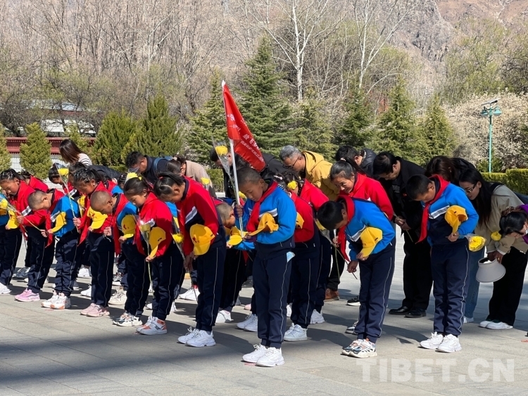 中國西藏網(wǎng)訊 4月12日上午,由西藏?zé)煵蓠v日喀則市昂仁縣第十一批駐村工作隊(duì)、江蘇商會黨委、冬日暖陽愛心公益組織承辦的“領(lǐng)略非凡世界、放飛多彩夢想”公益活動工作組帶領(lǐng)來自西藏日喀則市昂仁縣多白鄉(xiāng)的30名小學(xué)生來到位于拉薩市西郊的拉薩烈士陵園緬懷革命先烈。