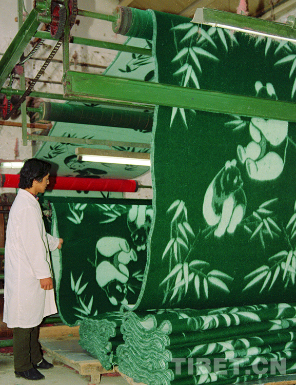 這是原西藏林芝毛紡廠工人正在生產“高原牌”毛毯(唐召明1991年攝)