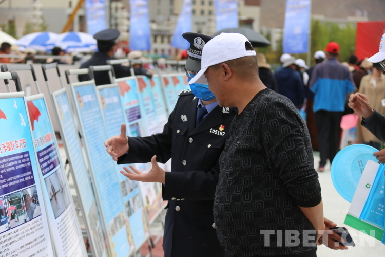 圖為在此次集中宣傳活動(dòng)中,西藏自治區(qū)公安廳展位前,民警向群眾宣傳打擊和防范經(jīng)濟(jì)犯罪相關(guān)知識(shí) 攝影:王佳豪