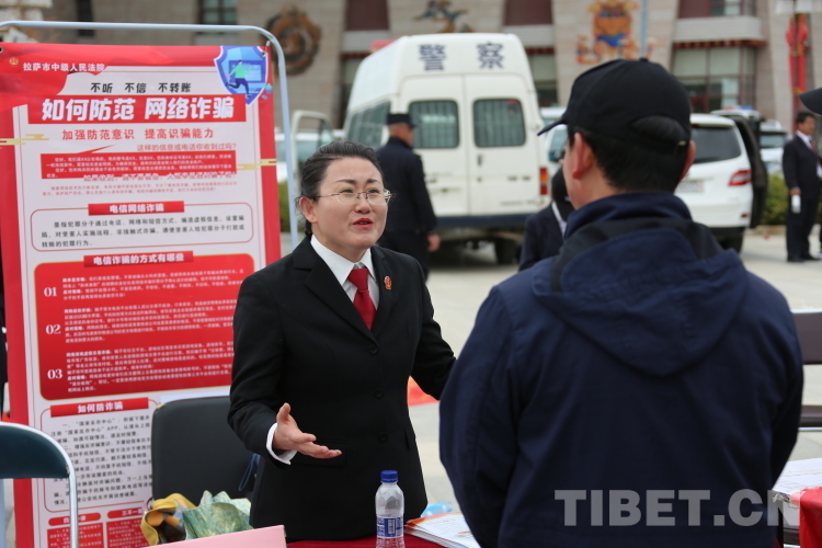 圖為拉薩市中級(jí)人民法院工作人員為群眾答疑解惑 攝影:王佳豪