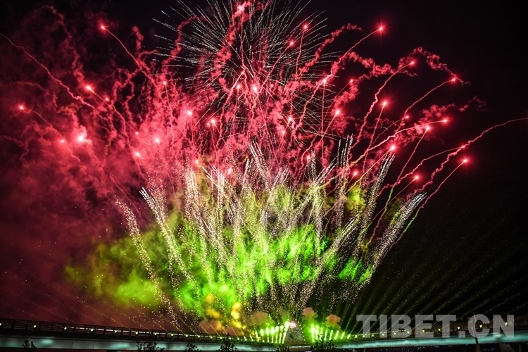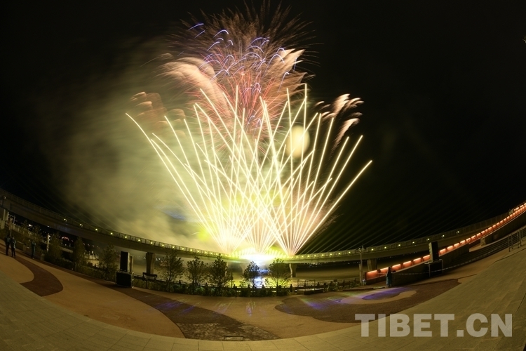 圖為點(diǎn)亮儀式的主點(diǎn)位拉薩中華文化公園煙花秀 攝影:次旦拉姆