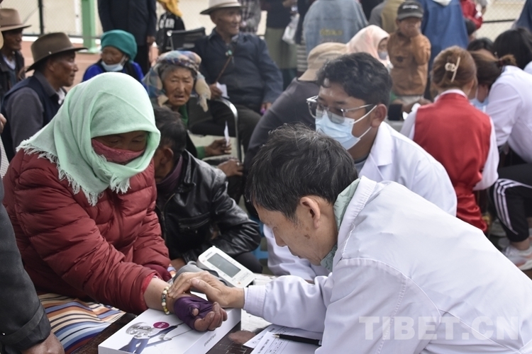 現場,義診專家為嘎瑪央吉跟她上小學的孫女進行認真細致的檢查,詳細詢問她們的日常習慣及身體狀況,并針對各自病情作出專業(yè)性診斷,不僅贈送藥品,還向嘎瑪央吉耐心講解藥品的服用方法。