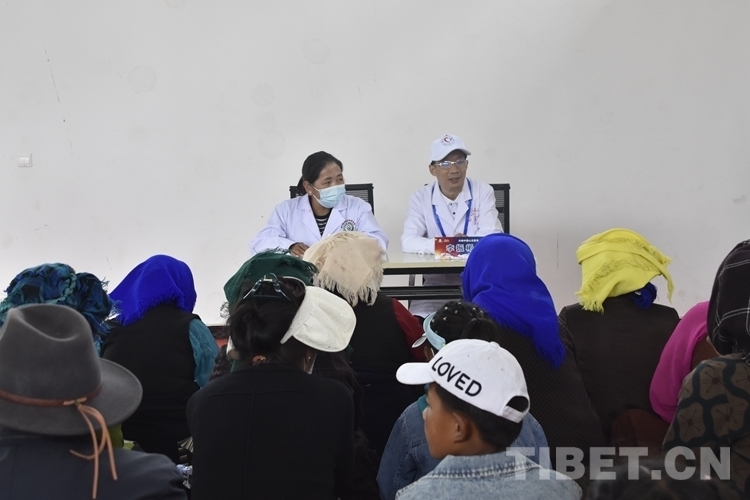 圖為7月8日,活動現場開展了骨關節(jié)炎防治健康知識講座,鄉(xiāng)政府還安排了一名翻譯 攝影:次旦拉姆