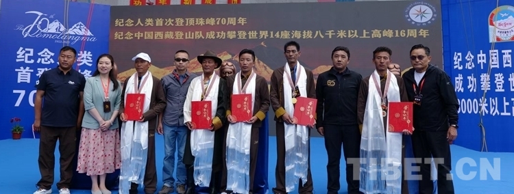 圖為活動(dòng)向五位登頂珠峰15次以上的登山達(dá)人頒發(fā)紀(jì)念獎(jiǎng)?wù)掠苫顒?dòng)主辦方供圖