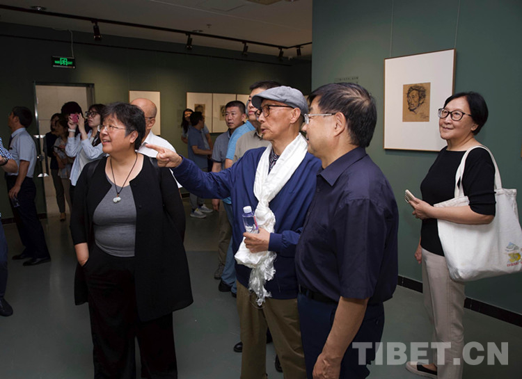 開幕式后,各位來賓在韓書力先生的引領(lǐng)解說下,興致勃勃地參觀了展覽。通過韓書力先生的講解,大家進(jìn)一步加深理解了作品所體現(xiàn)的西藏各族人民積極向上的精神面貌,體會(huì)到了各族群眾淳樸真摯的人生之美,感知到畫家對那一片高天厚土的真摯情感。