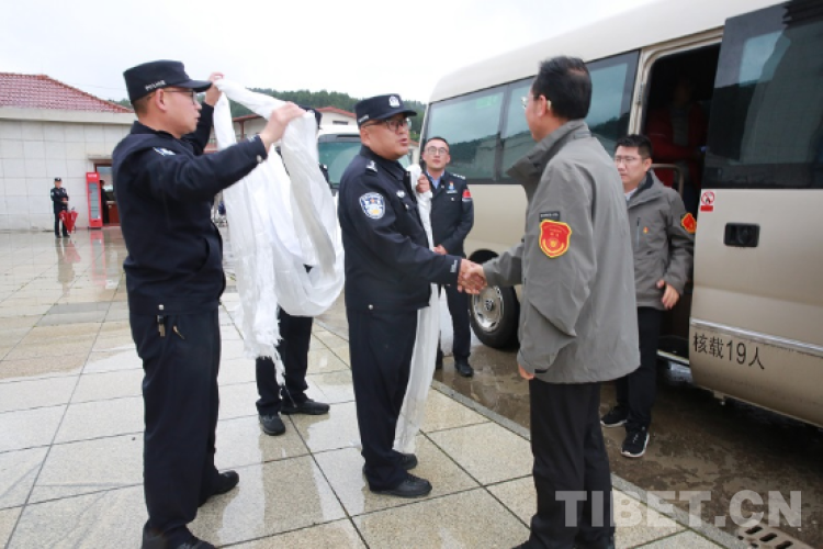 圖為吉隆出入境邊防檢查站民警歡迎醫(yī)療專家的到來(lái)
