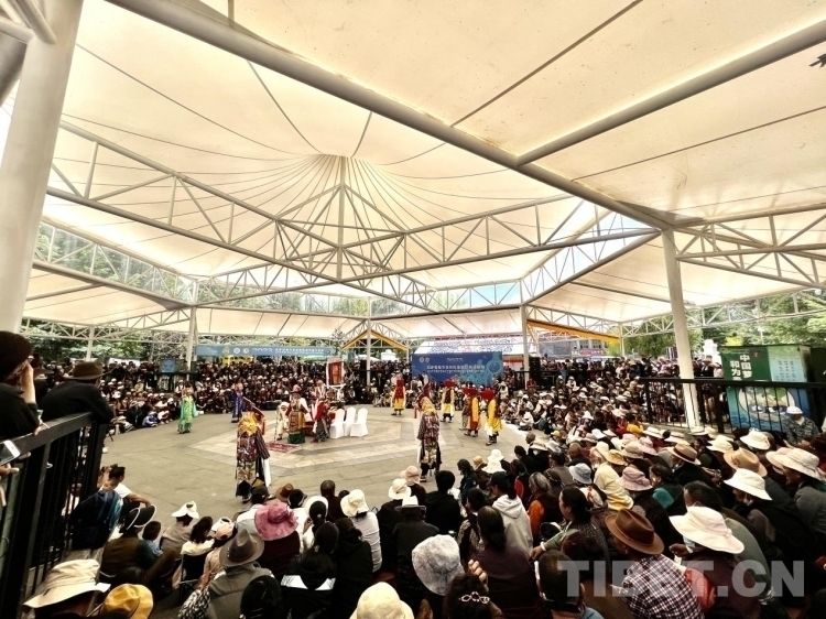8月16日上午11點(diǎn),西藏拉薩市林周縣甘曲藏戲隊(duì)在布宮腳下的宗角祿康公園演出了今年雪頓節(jié)的第一場(chǎng)藏戲演出節(jié)目——《卓娃桑姆》,市民游客紛紛到宗角祿康欣賞與享受雪頓節(jié)的藏戲文化“盛宴”。