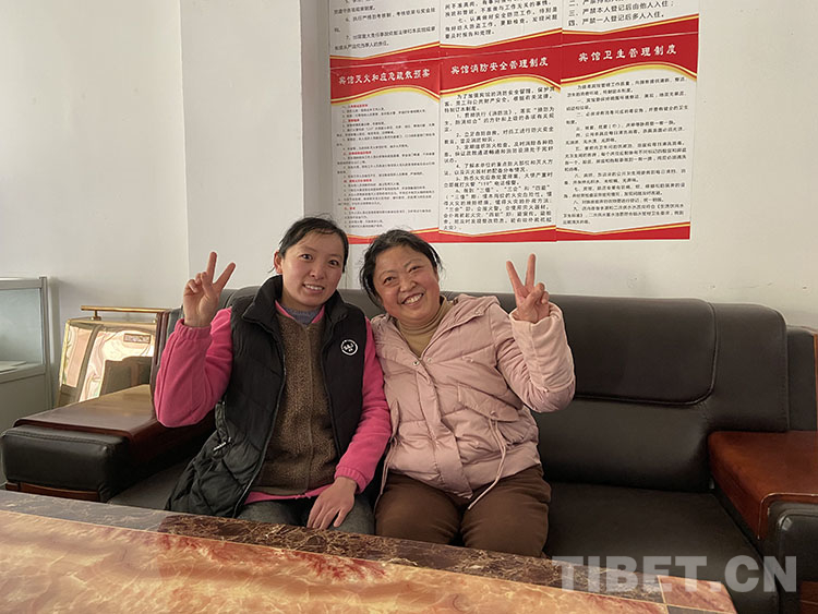 2001年,老公從格爾木坐長途汽車去拉薩。那時不是夫妻關(guān)系,卻彼此認(rèn)識。他在拉薩打拼幾年,主要是酒店經(jīng)營這一塊。2006年,青藏鐵路通車那一年,她坐上火車去拉薩投親,開始在剛堅飯店打工,后來又換了幾家酒店。由于都在同一行業(yè),之前又認(rèn)識,張保英與先來的他很快情感升華,成為一家人。
